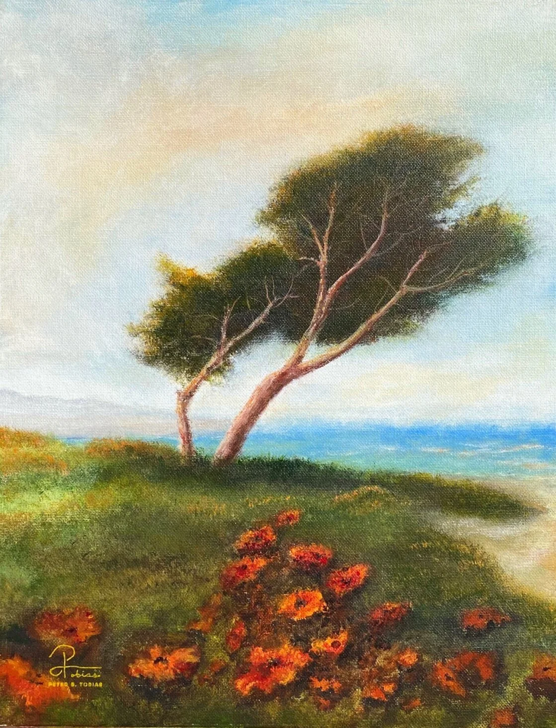 Windswept California Coast (14"x18") Acrylic on Panel - Available $550