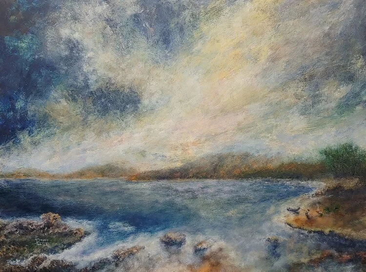 “Blue Sunrise”, (10"x10")Acrylic on Gesso Board Original Art- $350 USDClick for a custom reproduction(recommend metal print)